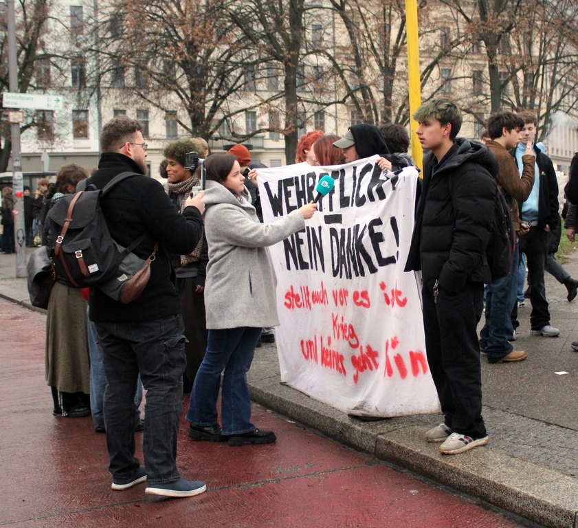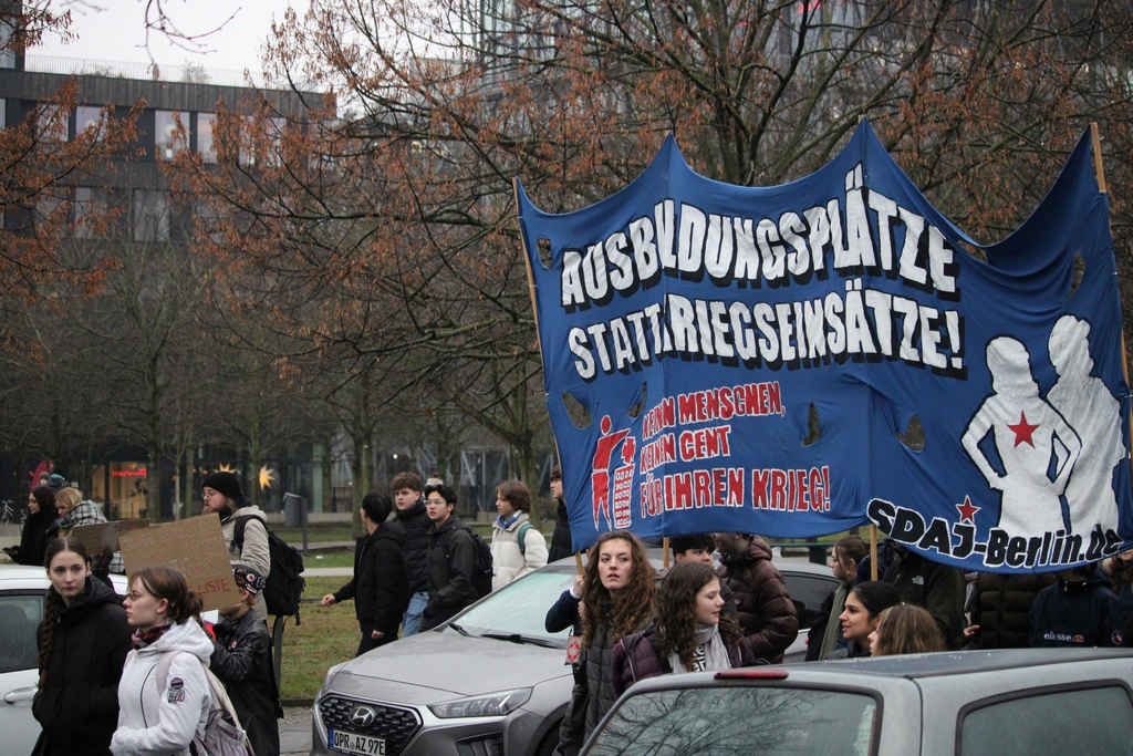 Das Spandauer Friedensplenum tritt am Samstag, den 28. Februar 2026 auf dem Spandauer Marktplatz mit einem Stand an die Öffentlichkeit. Wir wollen dokumentie-ren, dass wir voll und ganz hinter dem bundesweiten Schulstreik gegen die Wehr-pflicht stehen. Donnerstag, d. 5. März findet der um 11.00 Uhr auf dem Potsdamer Platz statt.Wir appellieren an die Schulleitungen und die Schulverwaltung, das Fern-bleiben der Schüler am Streiktag vom Unterricht zu tolerieren und von Strafmaßnah-men Abstand zu nehmen. Eltern sollten den Streik ihrer Söhne und Töchter als Wahrnehmung ihres demokratischen Grundrechts befürworten.