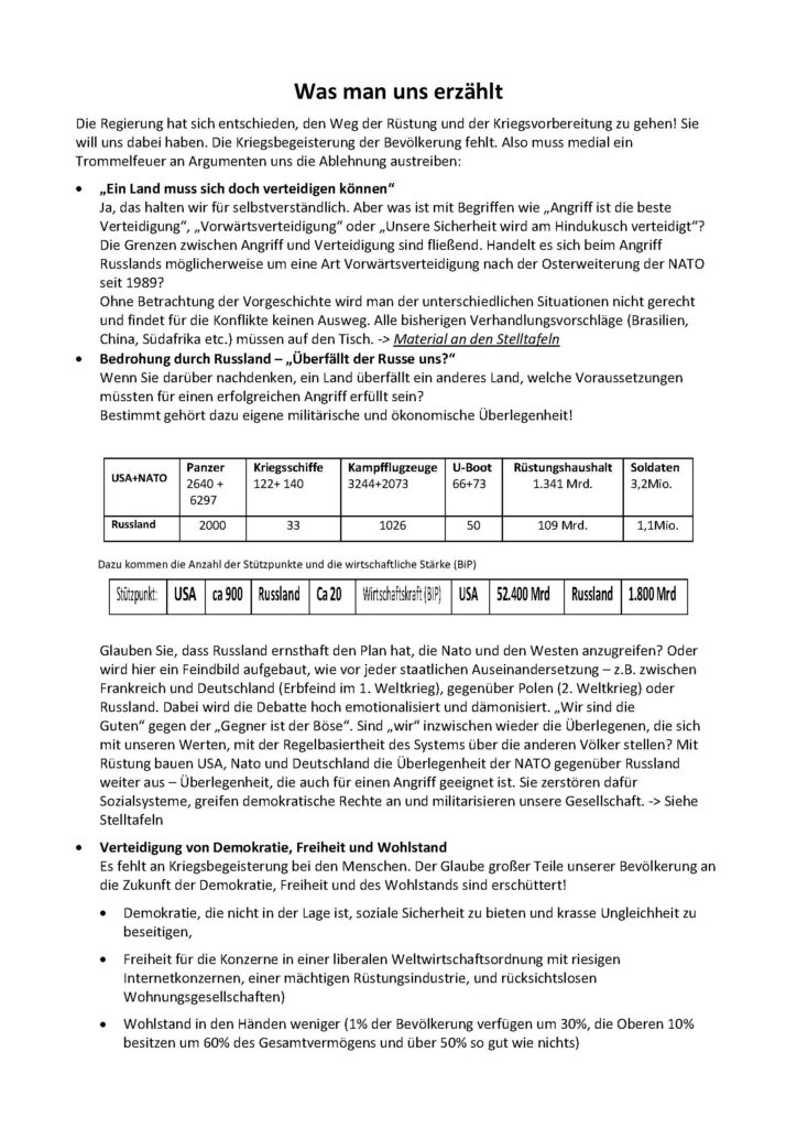 Wir brauchen Widerstand gegen diese Politik! Gegen Krieg und sozialen Krieg!