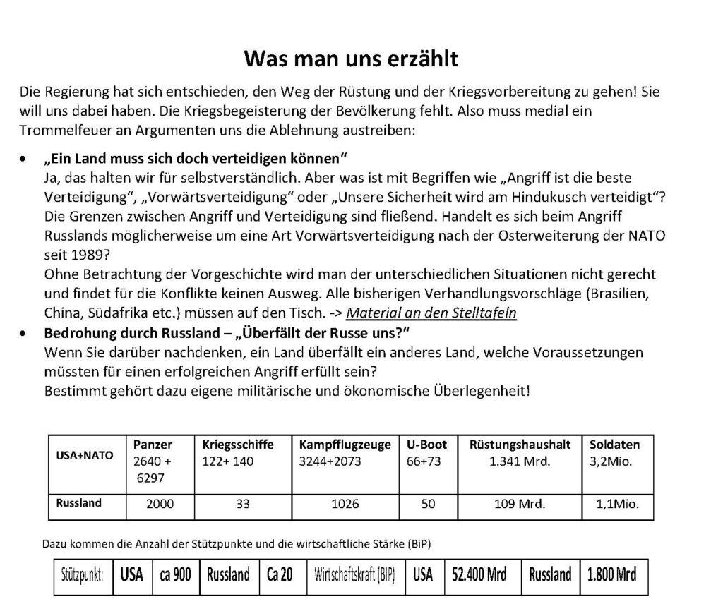 • Wir sind gegen jeden Krieg!